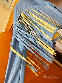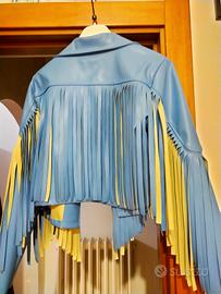 vendo giacca corta con frange indossata solo due volte x errore misura . morbidissima e comoda . colore azzurra e beige