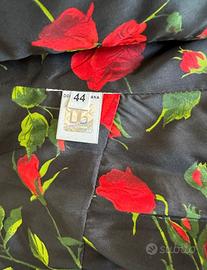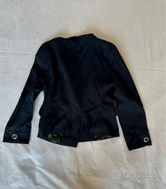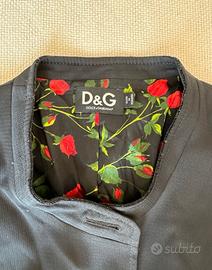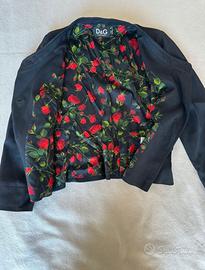 Giacca corta in cotone D&G. Nera con interno a fiori. Bottoni con contorno dorato. Parte in basso posteriore con pence. Taglia 44 praticamente nuova.