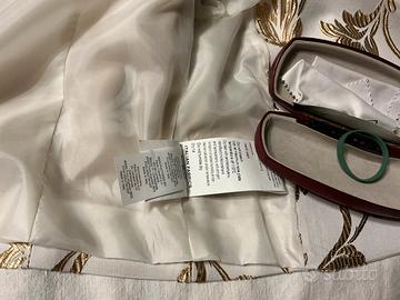 Giacca corta damascata in oro con bottoni color oro, imbottita con fodera bianca. Taglia S. Paolo Casalini - Linea “Formidable”. Elegantissima sia per cerimonia che abbinata ad abiti casual. Mai indossato