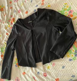 Giacca corta nera, dal taglio femminile e raffinato.