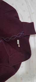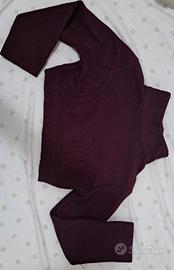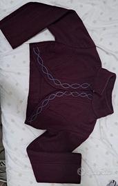 Giacchetto tagliato alla linea del seno aperto sul davanti con maniche lunghe. Stile etnico, in panno di cotone 100% con decorazione sul davanti, sagomato, colore bordeaux
