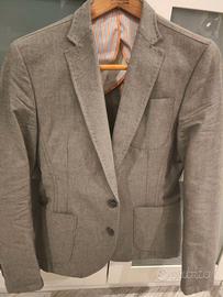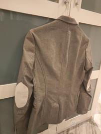 Giacca grigio chiaro taglia 46, gomiti con toppe bianche "nata così" estiva usata 2 volte e tenuta sempre in armadio con copertura, sembra nuova, cotone 100%bella giacca, peccato che non mi entra più prezzo 80 euro ,li vale tutti