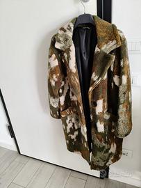 Vendo bellissima giacca/cappotto corto in lana, perfetto per la stagione autunnale e invernale. Il capo presenta un'accattivante fantasia militare/mimetica nei toni del verde oliva, marrone e panna, che lo rende un pezzo unico e di tendenza. Caratteristiche principali: • Materiale: Lana di alta qualità (o misto lana, se applicabile), che garantisce calore e comfort. • Taglia: S (controlla le misure qui sotto per una vestibilità precisa). • Design: Modello monopetto con collo a revers, due bottoni neri sul davanti e due pratiche tasche laterali. Interno completamente foderato per una migliore vestibilità. • Stato: Ottime condizioni, indossato pochissime volte. Non presenta segni di usura, macchie o difetti. • Stile: Perfetto per un look casual-chic, si abbina facilmente a jeans, pantaloni o gonne. Ideale per dare un tocco di originalità al tuo outfit. • Proviene da un ambiente non fumatori e senza animali domestici.