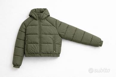 Giacca imbottita Terranova, modello corto e super trendy, perfetta per la stagione autunno/ inverno. Colore verde oliva facile da abbinare con qualsiasi outfit. - Cappuccio imbottito - Chiusura con zip frontale - Tasche laterali con zip - Polsini e fondo elasticizzati - Vestibilità cropped moderna Calda ma leggera, ideale per look casual e streetwear. 📏 Condizioni: nuova mai usata (taglia sbagliata) 📦 Spedizione veloce 💬 Scrivimi per info o misure!