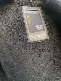 Giacca in pelle jack & jones, leggermente imbottita, ideale per la mezza stagione, usata una sola volta. Chiusura a zip, doppie tasche ( patella e laterali), collo staccabile con bottoni, polsini e vita a costine.