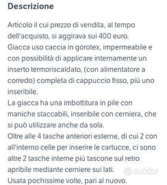 VENDO COME DA FOTO GIACCA DA CACCIA BENELLI THERMO-CORT NUOVA INTERNO STACCABILE PORTA CARTUCCE NEI TASCONI. PERFETTA NUOVA MAI USATA TAGLIA XXL 56 EURO 100