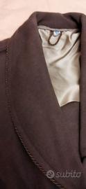 Elegante giacca da camera in morbido tessuto color cammello scuro, bordata con cordoncino, in scatola originale.