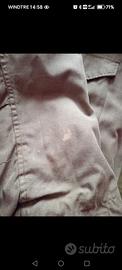 Giacca da campo color verde oliva, interno staccabile trapuntato, come da foto presenta alcune macchie (a differenza di chi ha venduto la giacca, ho segnalato la presenza, ma soprattutto viene venduta LAVATA). Inoltre segnalo che è in buone condizioni e non venduta come nuova, visto che è stata palesemente usata. Detto ciò, sono giacche indistruttibili. Non si vede molto bene la taglia perciò fornisco le misure