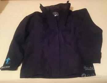 Giacca da donna blu scuro Helly Hanson usata ideale per la primavera e l'autunno perché protegge da acqua e vento