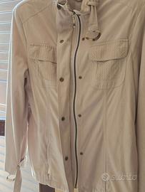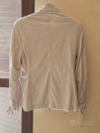 Giacca sportiva da donna. Colore panna/beige. Misura 44. Chiusura a cerniera/clip. Interno foderato ed esterno materiale morbido e soffice.