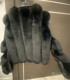 Giacca da donna nera NUOVA . Corta , ecopelle con pelliccetta , taglia S.