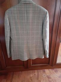 giacca da donna 100% pura lana vergine eccellenti condizioni, taglia 50, pied de poule tonalità bianco/nocciola, autunno inverno, chiusura a 2 bottoni, sul davanti 2 tasche a filetto ancora chiuse, leggermente sagomata sia davanti che dietro, completamente foderata.