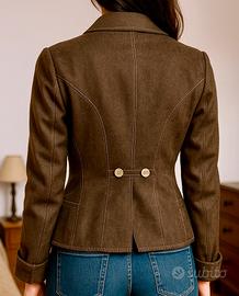 Un capo unico nel suo genere, con il caratteristico design sartoriale del brand: linee sagomate, cuciture a contrasto, chiusura doppiopetto e dettagli ricercati che valorizzano la silhouette.
