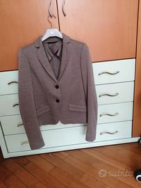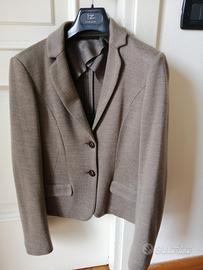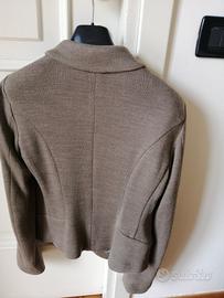 Giacca da donna MaxMara linea Weekend :color tortora, due bottoni, con taschino, maniche e spalle foderate, sottolinea gradevolmente la linea del corpo. Adatta ad essere indossata nella mezza stagione. Tessuto Jersey a maglia, composizione 61% fibra acrilica, 29% lana, 10% poliammide.