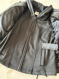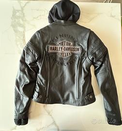Vendo bellissima giacca originale Harley-Davidson in pelle con felpa removibile 3-in-1. Il capo in vera pelle di vacchetta presenta: -orlo regolabile con bottoni a pressione -sistema di ventilazione a cerniera presente su petto, schiena e maniche -interno traforato traspirante -chiusura con zip centrale bidirezionale+ bottone a pressione al collo -2 tasche esterne scaldamani con zip -2 tasche interne portaoggetti con zip -logo Harley-Davidson su petto e schiena La felpa interna removibile completa di cappuccio presenta: -chiusura con zip centrale -2 tasche con chiusura a bottone a pressione -manica a guanto con asola per il pollice -logo Harley-Davidson sul petto. Colore nero. Disponibilità immediata. Consegna a mano. Capo di qualità MAI USATO (nuovo anche se senza cartellino) difficile da trovare in queste condizioni per questo prezzo. Contattami per ulteriori informazioni.