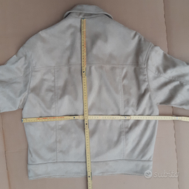 Giacca da donna taglia S marca Zara, materiale poliestere, al tatto somiglia a finto camoscio, colore beige, peso circa 7 etti.