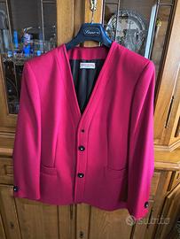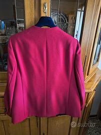 Giacca rossa/borgogna da mezza stagione; Made in Italy; Taglia 48 (lunghezza 68 cm); Materiale: 63% acetato; 37% cupro rayon; Presenta anche un bottone di riserva per eventuale perdita.