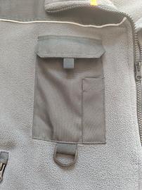 Giacca da lavoro in pile con in basso due tasche laterali con chiusura a zip, più in alto un taschino con chiusura a strappo e gancio portaoggetti l'altro con chiusura a zip. La porzione delle maniche inferiori sono ricoperte da tessuto da maggiore protezione.