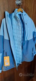 Giacca da montagna 3 in 1, composta da guscio impermeabile con cappuccio e piumino completamente separabili con cerniera.