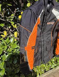 Giacca tecnica da moto AXO da DONNA, perfetta per il touring o l'uso quotidiano. Il contrasto arancione fluo garantisce un'ottima visibilità su strada. • Caratteristiche: Taglio lungo per maggiore protezione dal vento, tasche anteriori capienti, regolazioni in vita e sulle maniche per un fit personalizzato. Materiale idrorepellente. • Condizioni: Molto buone, tessuto robusto senza segni di usura evidenti. TAGLIA: M da donna