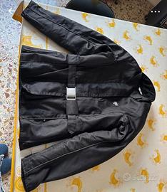 Giacca praticamente NUOVA in taglia XS, usata 3/4 volte in stagione estiva e per questo l’imbottitura non l’ho mai indossata. Sfoderabile e idrorepellente. Ha le protezioni per gomiti e spalle,possibilità di inserire protezione per la schiena che io non ho ma ha la predisposizione per l’inserimento. Veste molto bene per via del cinturino in vita. Ha dei piccoli graffi sulla fibbia del cinturino come visibile nelle foto,unico difetto.
