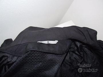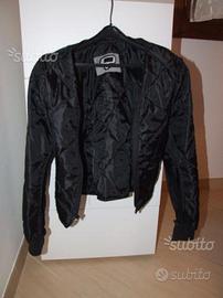 Tessuto Cordura, imbottitura trapuntata in alluminio removibile , fodera in poliestere traforata, antibatterica, antisudore, interno e bordo collo morbido, 2 tasche esterne, 3 tasche interne, protezioni gomiti e spalle omologate, inserti reflex; maniche staccabili