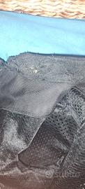la giacca è dotata di protezioni su spalle, braccia, gomiti, avambracci, possibilità e spazio di aggiungere la gobba aerodinamica