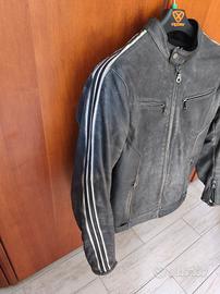 Giacca da moto in pelle invecchiata marca Ixon mod. Opium vintage nera. Fodera invernale staccabile e protezioni amovibili su spalle gomiti e schiena in buone condizioni integra in ogni sua parte. taglia XL 52.