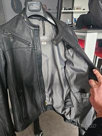 Giacca da moto 100% pelle 4 stagioni, taglia 52 (L/XL), certificata EN 17092-2:2020 in classe AA. Protezioni spalle e gomiti omologate, slot per protezione schiena, gilet imbottito Thermoclassic staccabile, chiusura regolabile in vita con bottoni. Solo consegna a mano su tutta Milano e Monza-Brianza.