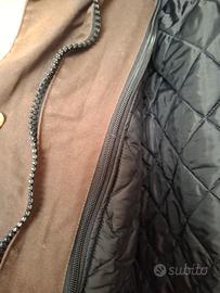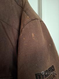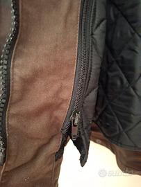 Giaccone da moto marrone Momo design, con imbottitura con cerniera. Piccole macchie sulla spalla sinistra, come da foto. Usata, ma ben tenuta. Tg. 50