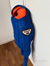 Dettagli Giacca moto da donna Blauer Easy Woman 1.1 blu elettrico. Ttessuto Knit Nylon e Lycra semi elasticizzato, molto simile al neoprene, estremamente morbido al tatto. In corrispondenza delle spalle è applicato un logo Blauer in rilievo, ed il look generale estremamente sobrio rende questa giacca adatta anche come capo di abbigliamento. All'interno è applicata una membrana traspirante fissa che rende la giacca anche completamente impermeabile all'acqua. Le protezioni sui gomiti sono di tipo omologato e amovibile mentre sulle spalle rimangono fisse, ma bene integrate nella giacca, garantendo un'ottima vestibilità. Cappuccio, due tasche esterne con chiusura zip waterproof.