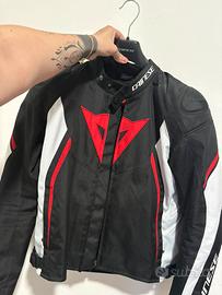 Dainese Avro Tex è una giacca da moto versatile, leggera e dallo stile sportivo che si adatta a tutte le condizioni climatiche. La fodera termica interna è infatti smontabile grazie alla fodera termica smontabile ed è traforata per favorire un'ottima traspirazione, mentre le prese d'aria la rendono molto ventilata. A garantire sicurezza al capo contribuiscono le protezioni composte certificate su spalle e gomiti e le inserzioni rigide sulle spalle. Gli elementi riflettenti permettono invece di essere visibili anche di sera e notte e/o in condizioni di scarsa luminosità. CARATTERISTICHE TECNICHE: - Tessuto D-Synth 350 - Protezioni composte smontabili su spalle e gomiti certificate secondo la normativa EN 1621.1 - Inserzioni rigide in poliuretano sulle spalle rivestite in tessuto - Predisposta a montare una protezione dorsale tipo G (non inclusa)- Inserzioni elasticizzate Microelastic - Girovita, collo e polsini regolabili - Cerniera di connessione giacca-pantaloni Dainese - Fodera termica estraibile - Fodera interna in tessuto Sanitized perforata per una maggiore traspirazione - Prese d'aria con cerniera nella parte frontale e posteriori - Elementi riflettenti per essere più visibile durante la guida notturna o con scarsa luce - 2 tasche esterne - 2 tasche interne - 1 tasca nella fodera interna