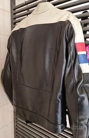Giacca in pelle della DAINESE, marchio leader nell'abbigliamento motociclistico.