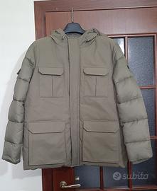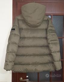 Giacca da neve pesante con capuccio di colore verde oliva, nuova mai indossata, taglia XL. Prezzo iniziale 169 €, acquistata con sconto al 50%.