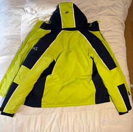Giacca da sci adulto della 8848 Altitude taglia XL imbottita e ben tenuta colori giallo fluo e blu con cappuccio removibile e varie tasche esterne e interne per poter trasportare ski pass e oggetti personali