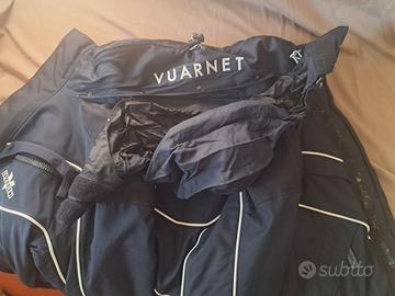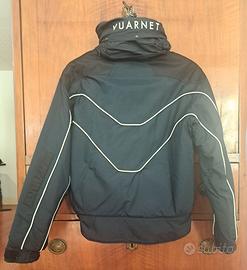 Giacca da sci blu Navy con inserti bianchi taglia 38 francese ( corrispondente a 42 italiana). Cappuccio a scomparsa (si arrotola nel collo). Regolabile in vita con cintura elastica interna. Polsini con chiusura in velcro. Ottimo stato perché utilizzata poco.