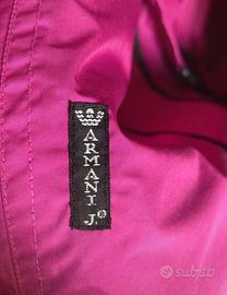 Giaccone il vera piuma d’oca di Armani jeans reversibile. Fucsia/nero , usato ma ancora in buono stato . Taglia 40 ma veste 42 . I cursoni sono leggermente consumati. Cappuccio interno nel colletto.