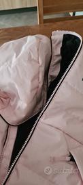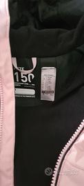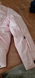 Giacca decathlon rosa da sci per bambina età 8 anni con elastico interno e tasca su manica per skipass. Macchia su gomito