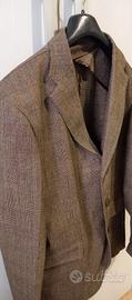 Colore:Marrone con una trama evidente, a quadri che suggerisce un tessuto misto o del lino.