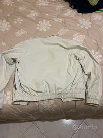 Di colore Bianco con cappuccio estraibile e chiusura a cerniwra