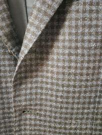 Revers a dente, 3 bottoni stirati a 2, due spacchi posteriori, spalle destrutturate, fodera interna intera.