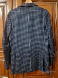 Giacca da uomo Jack Emerson Torino, a quadri blu e neri, taglia 46, in tessuto flanella 100% lana, made in Italy.