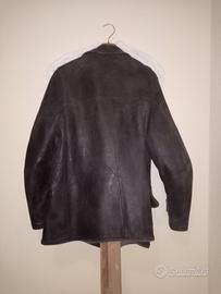 Giacca da uomo a doppio petto in pelle di colore nero taglia 48/50, originale degli anni 30.