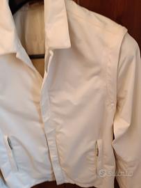 Giubbotto da uomo in tessuto tecnico di Goretex (nylon 68% ed elastan 32%) di colore beige il modello glamour di tendenza 4 tasche le 2 esterne con zip la chiusura doppia a cerniera ed a strappo taglia 52. giuo148. Lunghezza dal collo in giù 69 cm. larghezza della spalla 48 cm. larghezza del torace da ascella ad ascella 57 cm. lunghezza delle maniche 67 cm. In eccellenti condizioni. Originale ed autentico (Codice autenticità: Art. SGV214 Mat.23H RN98339 CA34767). Prada. Milano - Made in Italy