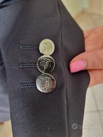 Giacca da uomo Trussardi taglia 52, in buono stato, colore blu. Lunghezza manica dalla spalla 63 cm, lunghezza giacca dal centro dietro 77 cm, senza spacchi.