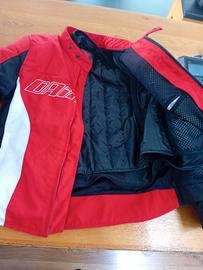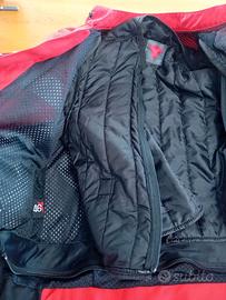 Dainese estiva, con giubbotto trapuntato all'interno per le stagioni più fredde. Piumino estraibile, perfetto da usare anche separatamente dalla giacca. Completa di protezioni.