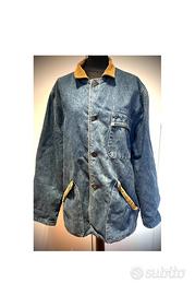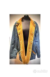 Giaccone denim jeans con interno in velluto a costine originale Fiorucci, con bottoni originali griffati.
