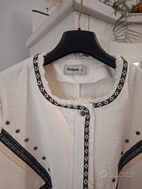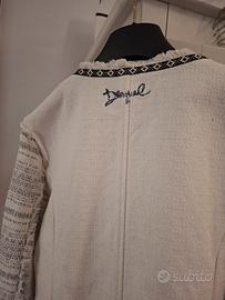 Bellissima giacca donna Desigual, dettagli frange e borchiette, zip e ricami floreali alle maniche, taglia 42