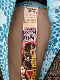 Giacca blazer marca Desigual, taglia 42, nella tipica fantasia del brand. Si chiude con cerniera con doppio cursore legato, modello leggermente sfiancato con martingala dietro, foderata.