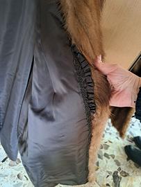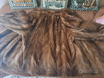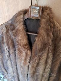 Giacca misura 46/48 80 cm di altezza di code di visone marrone chiaro, indossata un paio di volte, rifinita artigianalmente con 2 punti di chiusura.